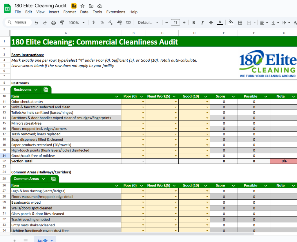 Free Commercial Cleanliness Audit Tool